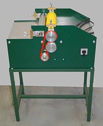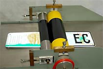 Place the previously embossed metal plate (see embossing equipment) between the base and the roller and feed the edge through. |